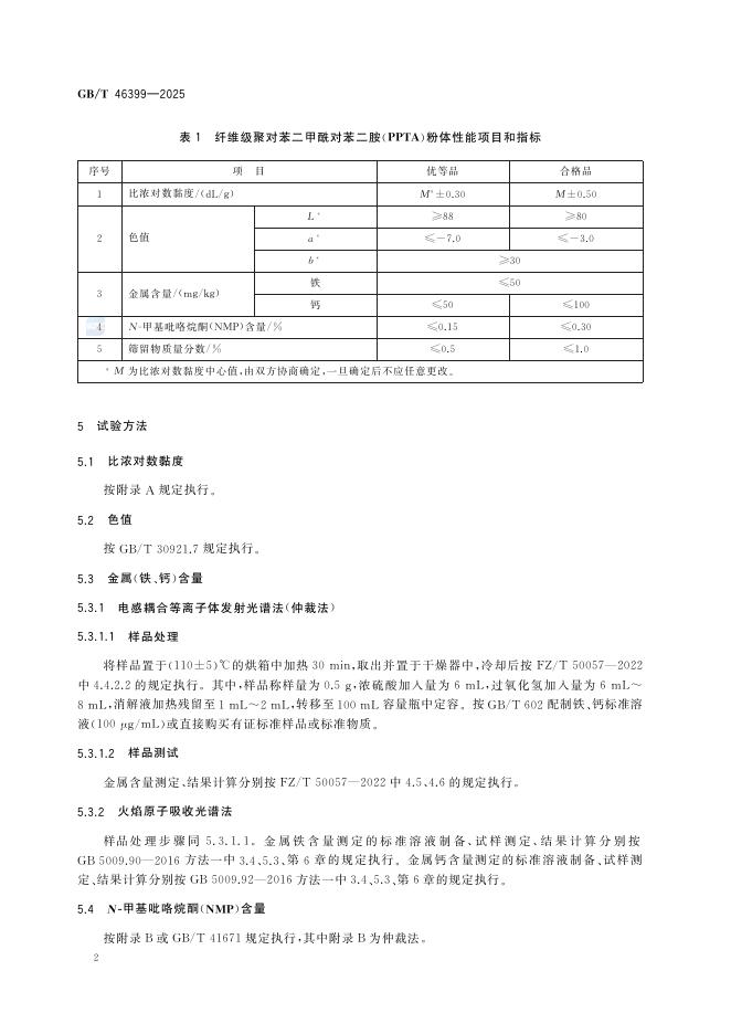 GB/T 46399-2025 纤维级聚对苯二甲酰对苯二胺(PPTA)粉体