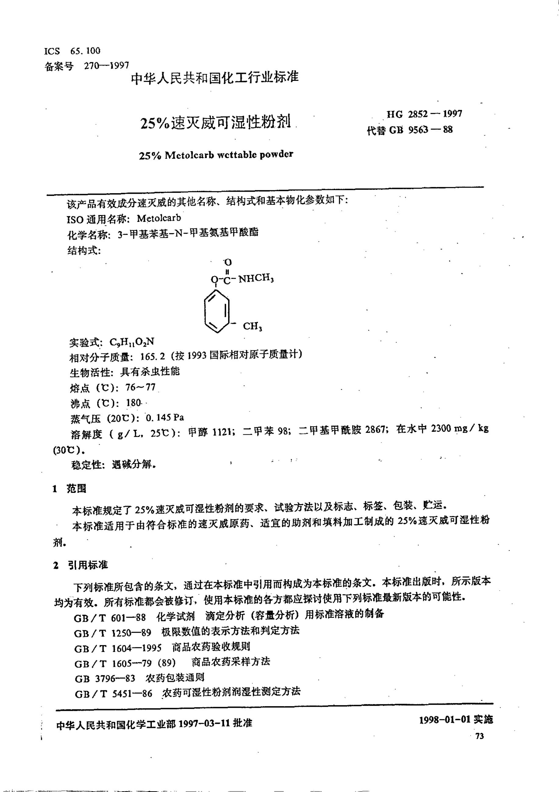 HG/T 2852-1997 25%速灭威可湿性粉剂