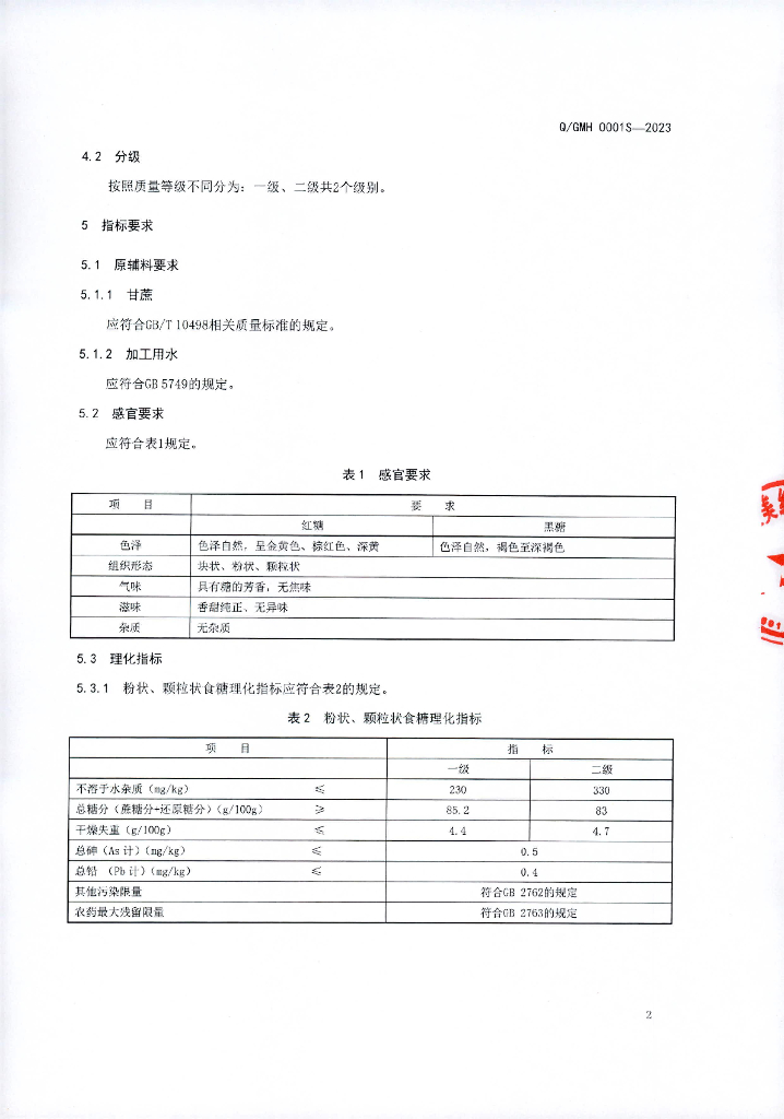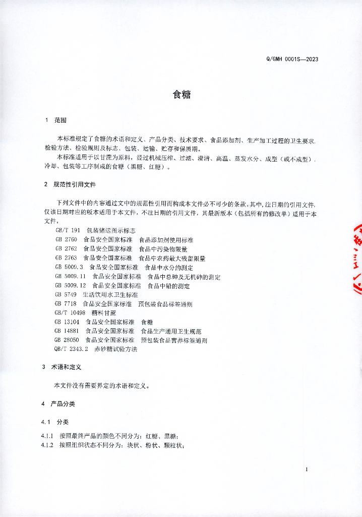 Q/GMH 0001S-2023 食糖 广西南宁桂美红食品有限公司