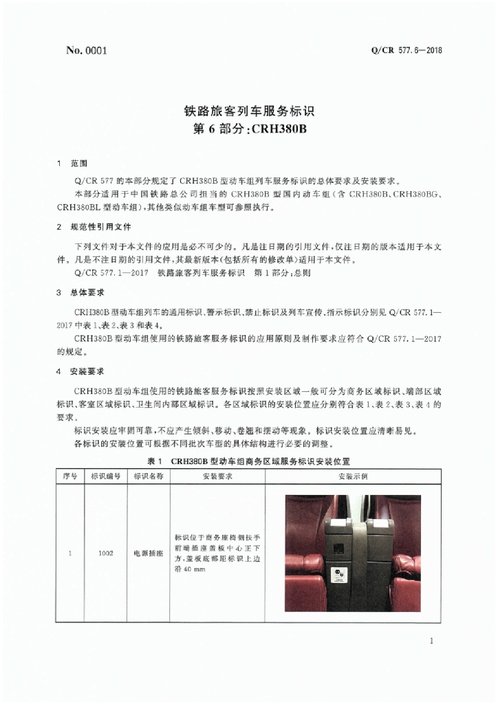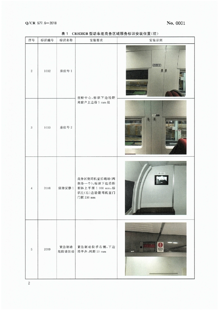 Q/CR 577.6-2018 铁路旅客列车服务标识 第6部分:CRH380B