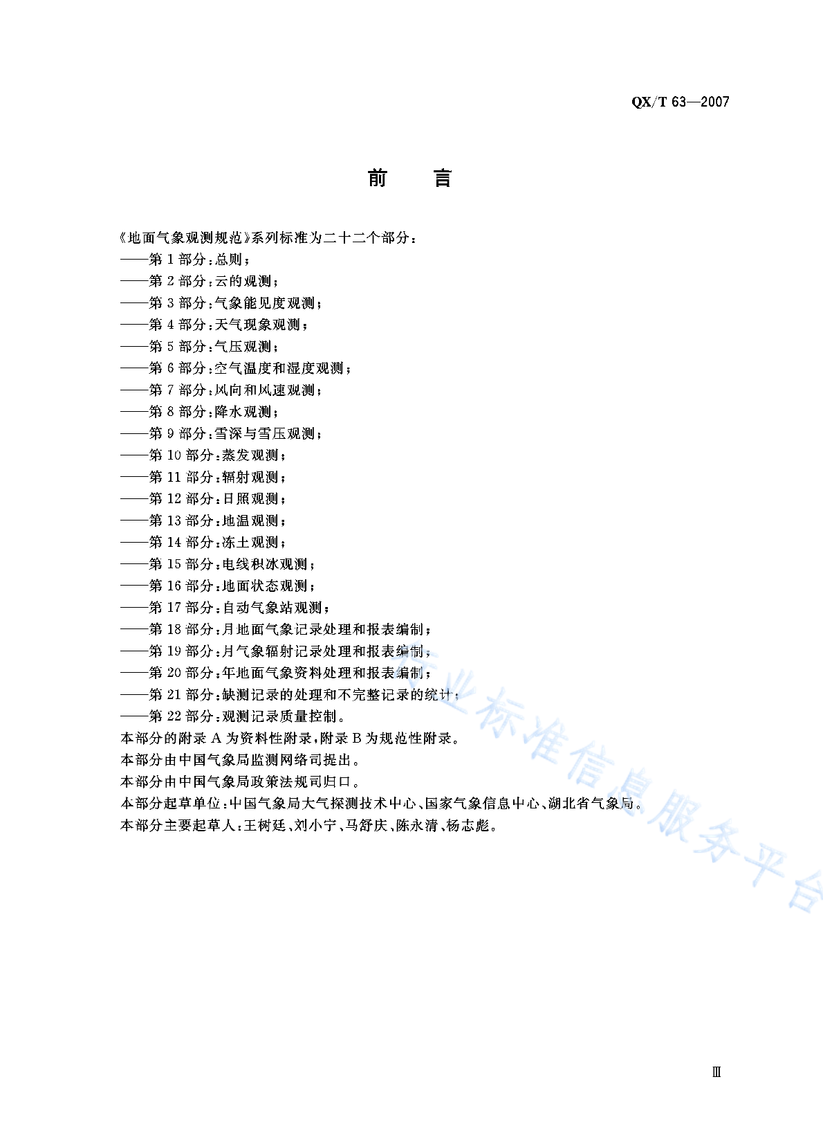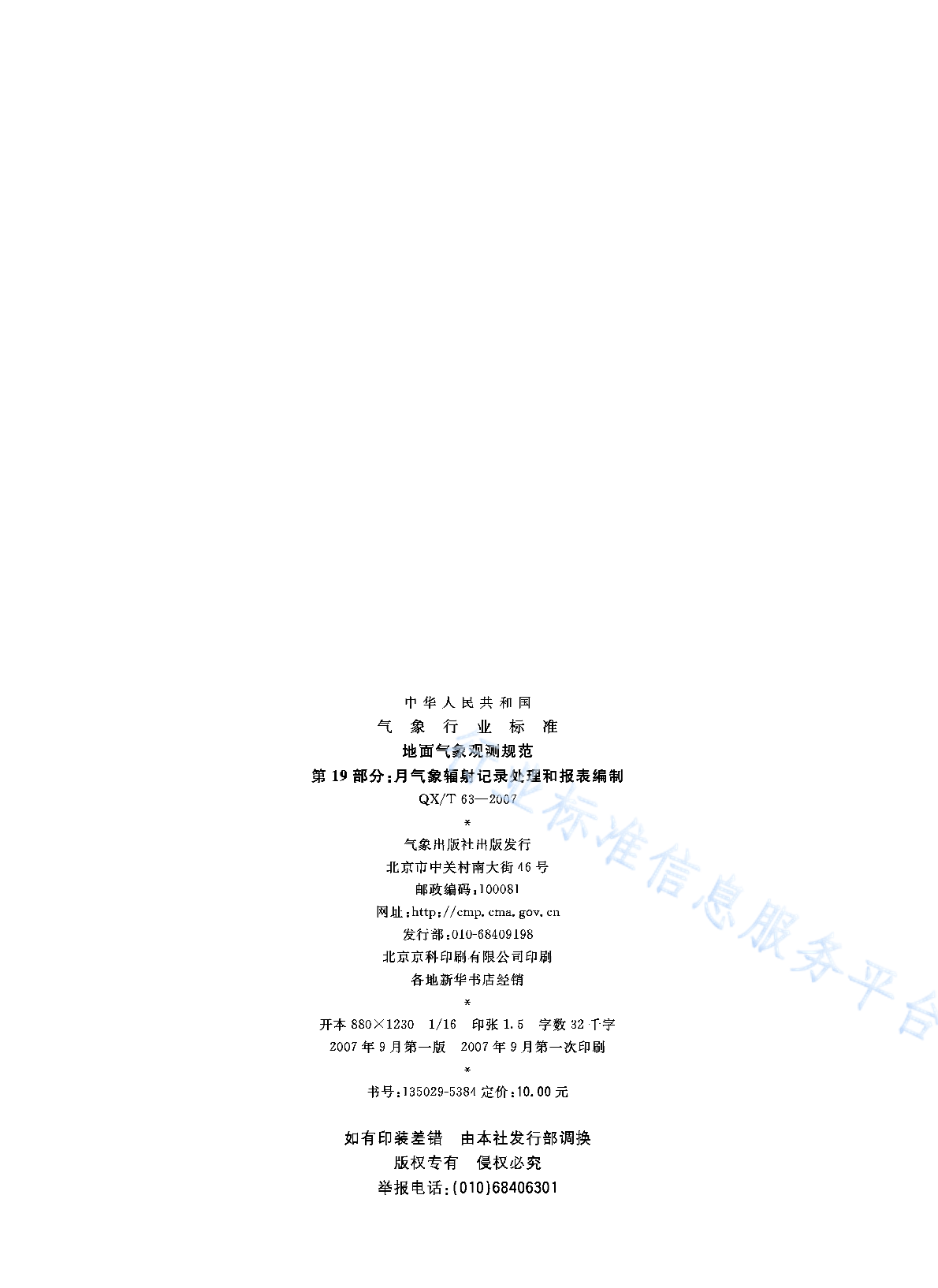 QX/T 63-2007 地面气象观测规范 第19部分:月气象辐射记录处理和报表编制