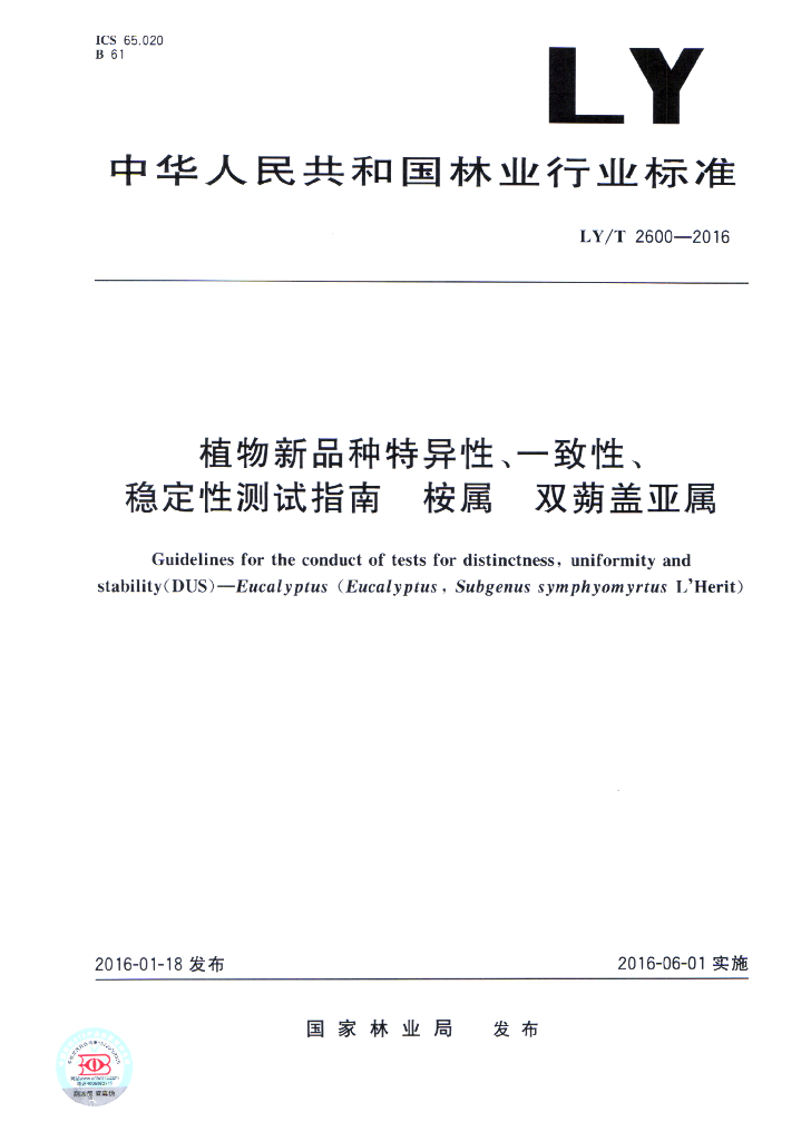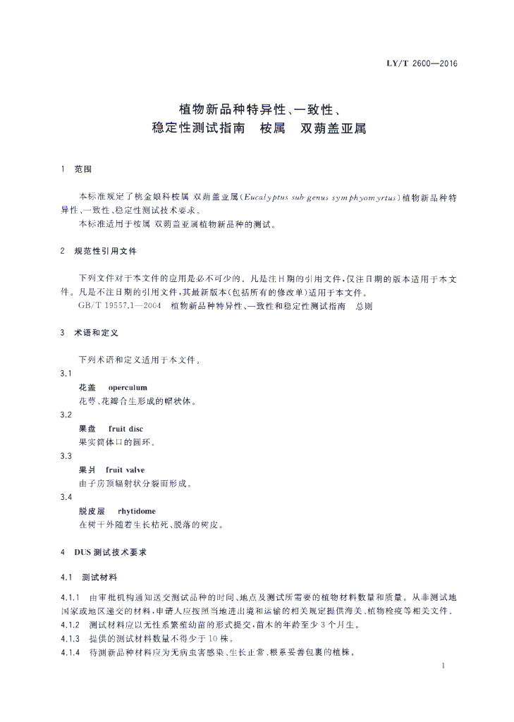 LY/T 2600-2016 植物新品种特异性、一致性、稳定性测试指南 桉属 双蒴盖亚属