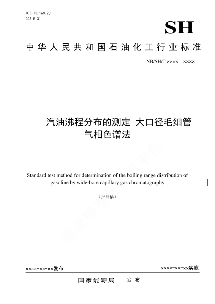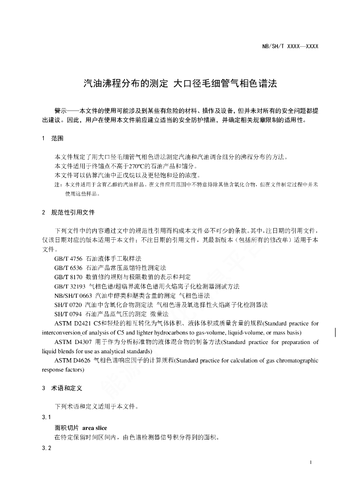 NB/SH/T 6051-2022 汽油沸程分布的测定 大口径毛细管气相色谱法