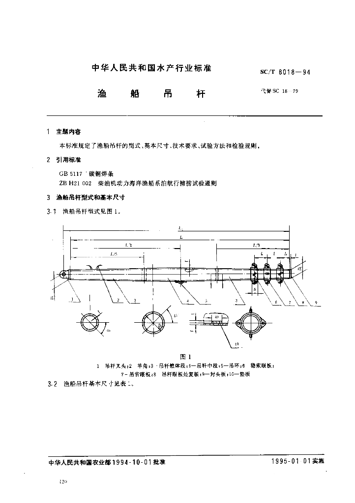 SC/T 8018-1994 渔船吊杆
