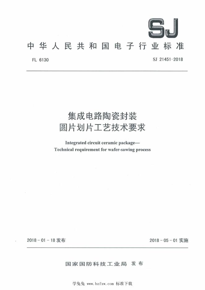 SJ 21451-2018 集成电路陶瓷封装 圆片划片工艺技术要求