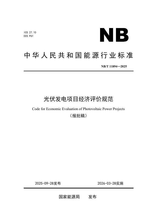 NB/T 11894-2025 光伏发电项目经济评价规范