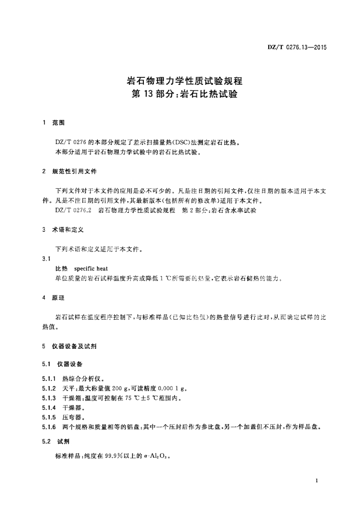 DZ/T 0276.13-2015 岩石物理力学性质试验规程 第13部分:岩石比热试验