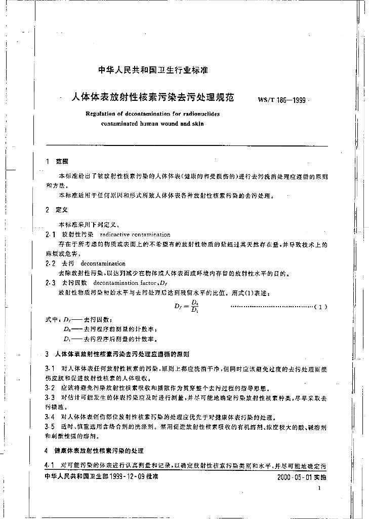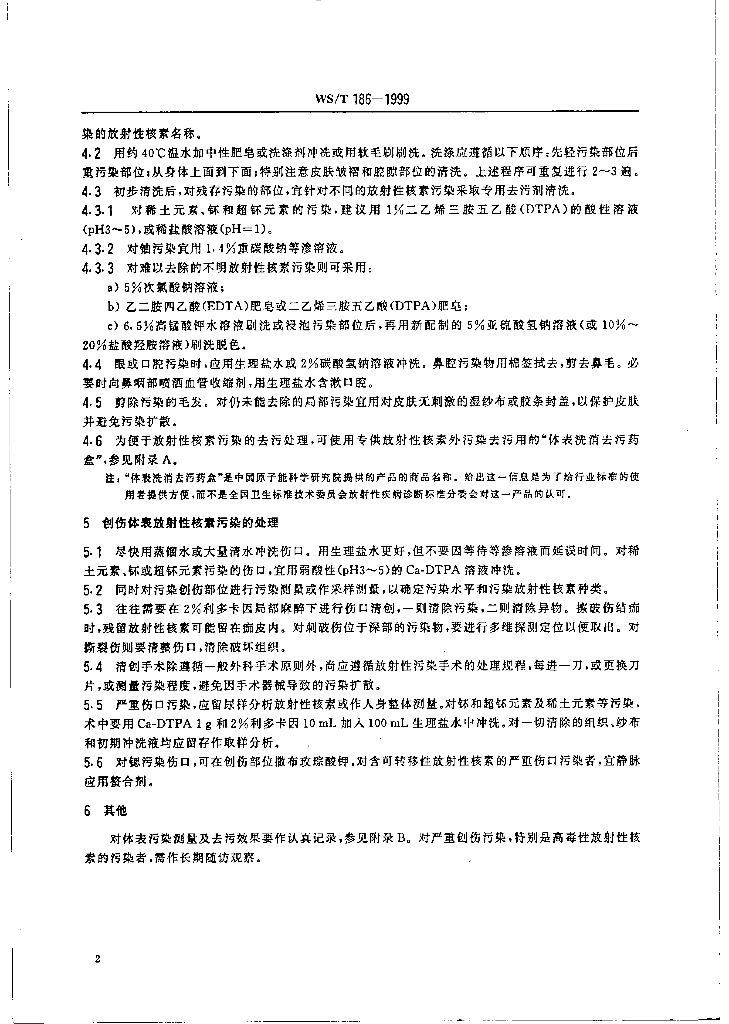 WS/T 186-1999 人体体表放射性核素污染去污处理规范