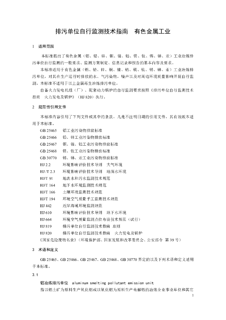 HJ 989-2018 排污单位自行监测技术指南有色金属工业