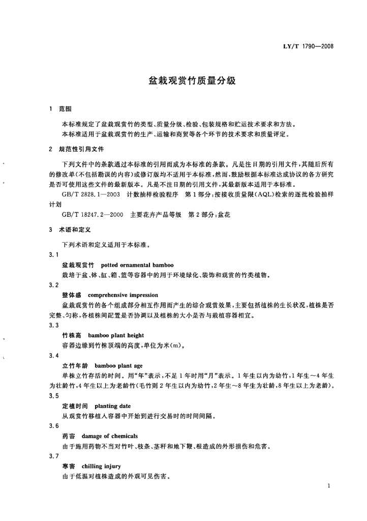 LY/T 1790-2008 盆栽观赏竹质量分级