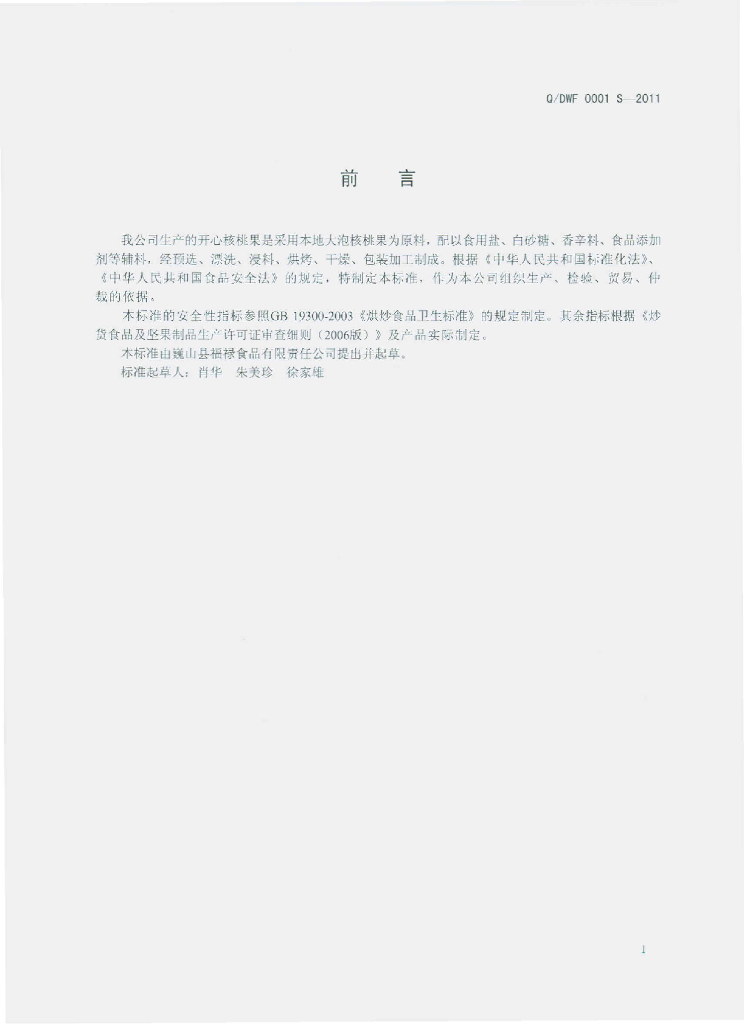Q/DWF 0001S-2011 开心核桃果