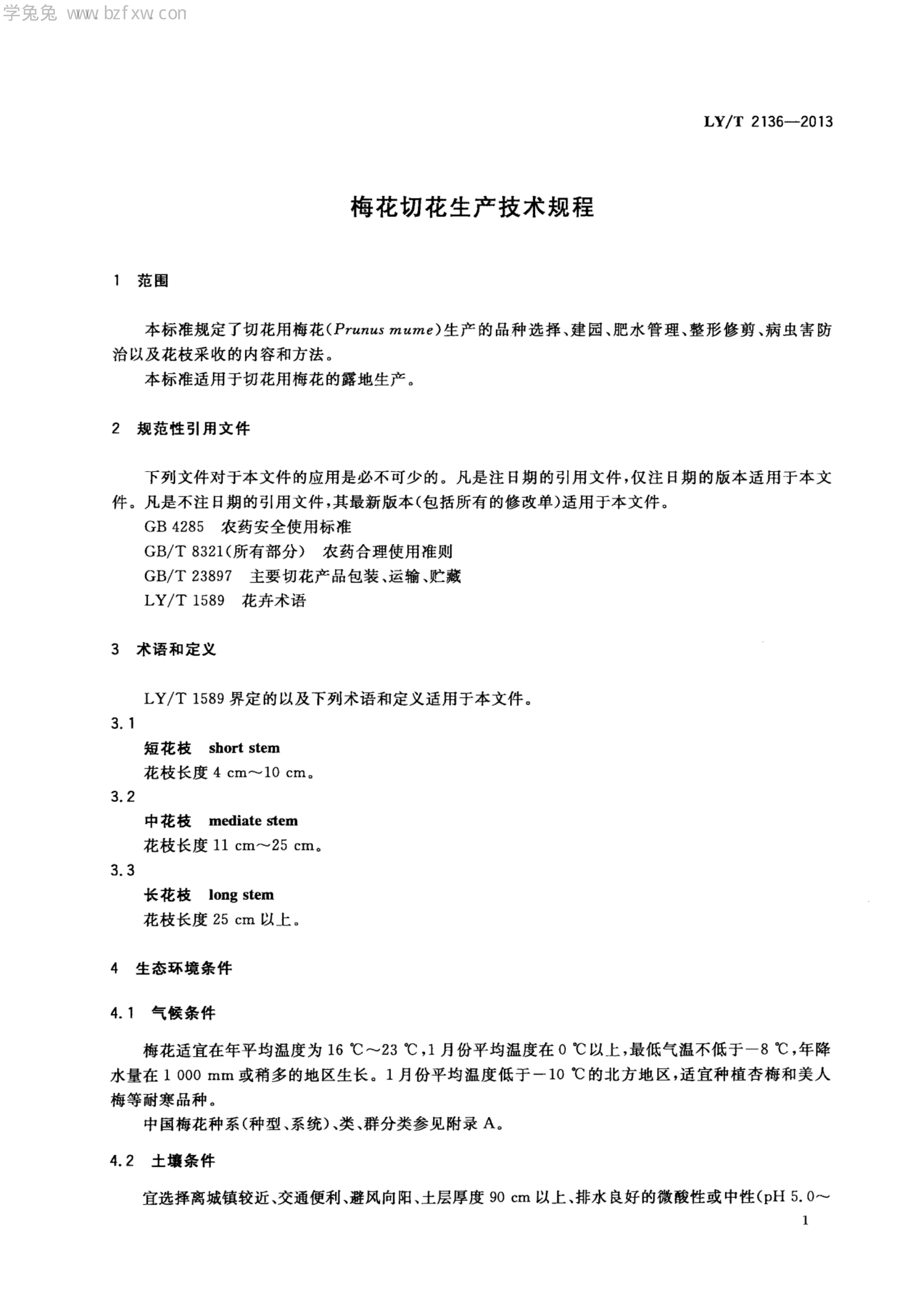 LY/T 2136-2013 梅花切花生产技术规程