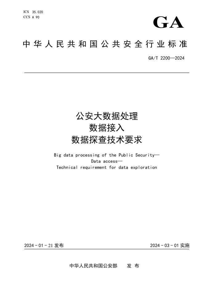 GA/T 2200-2024 公安大数据处理 数据接入 数据探查技术要求