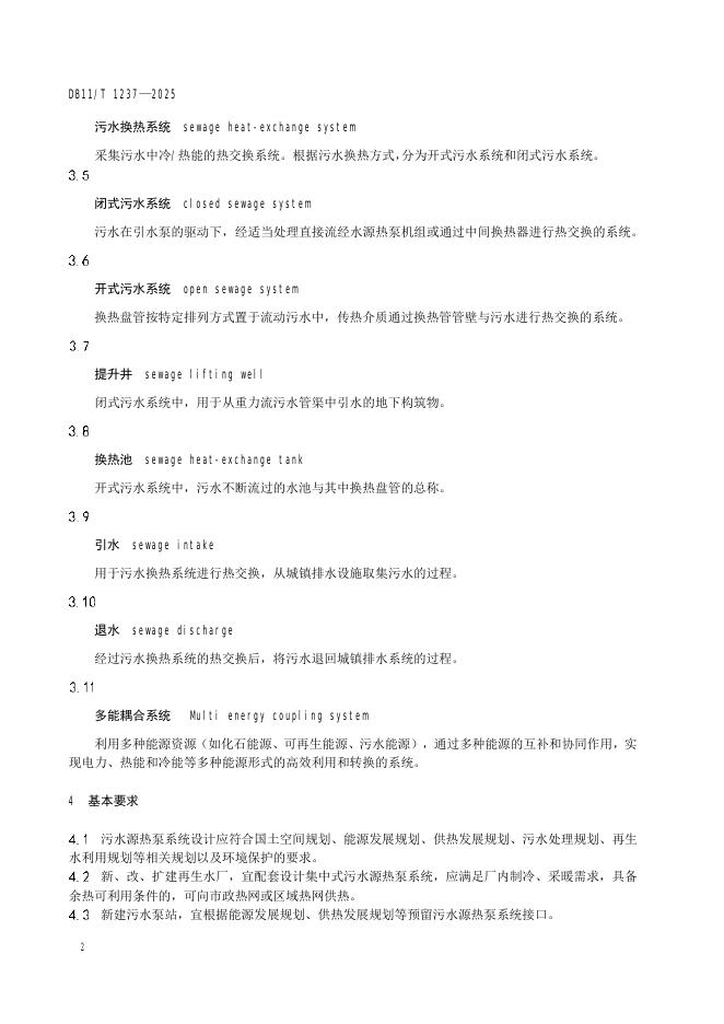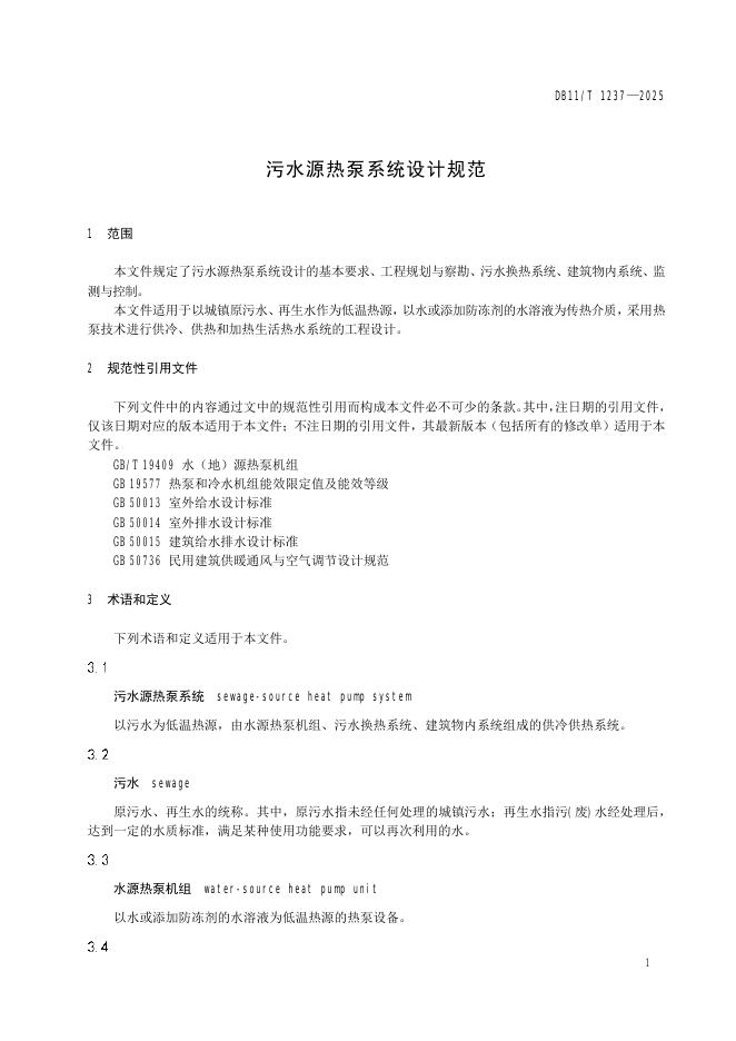 DB11/T 1237-2025 污水源热泵系统设计规范