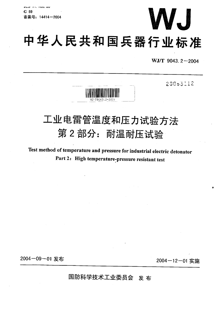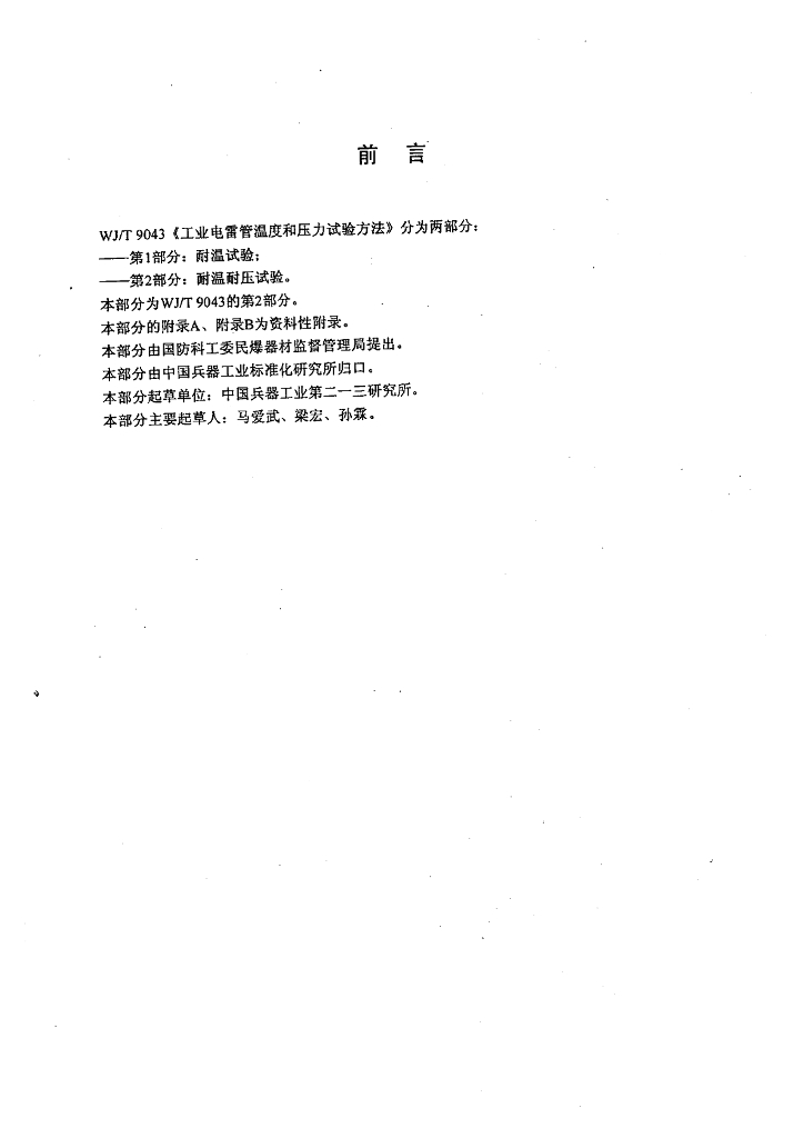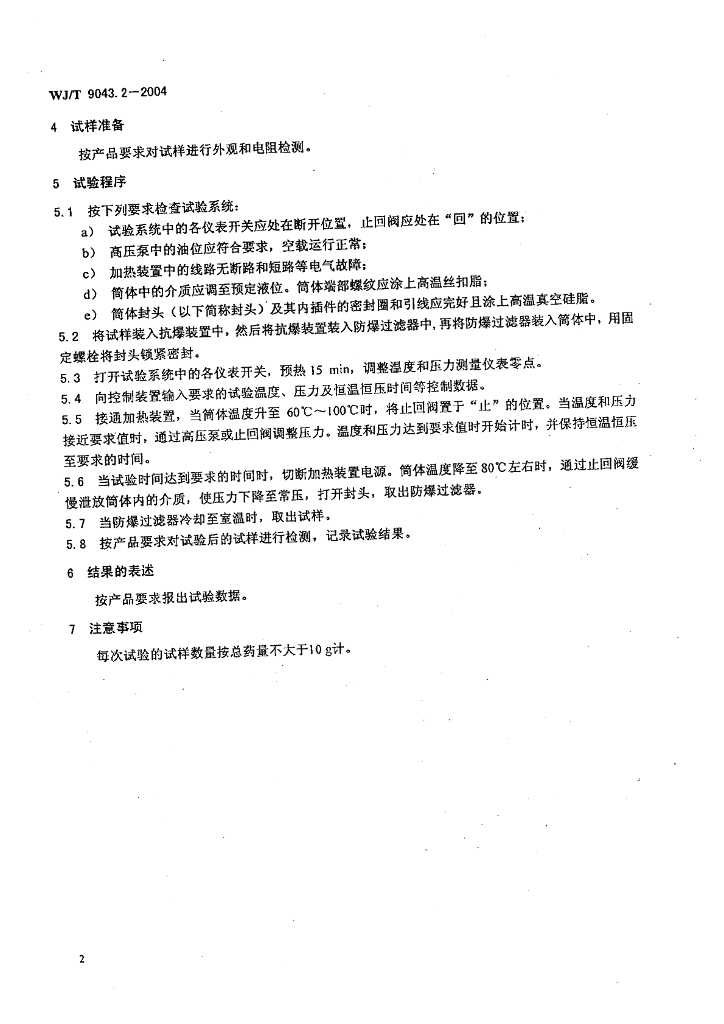WJ/T 9043.2-2004 工业电雷管温度和压力试验方法 第2部分:耐温耐压试验