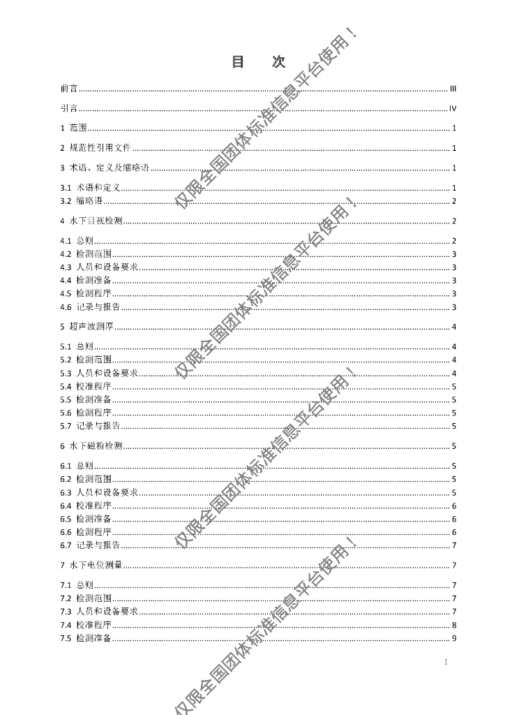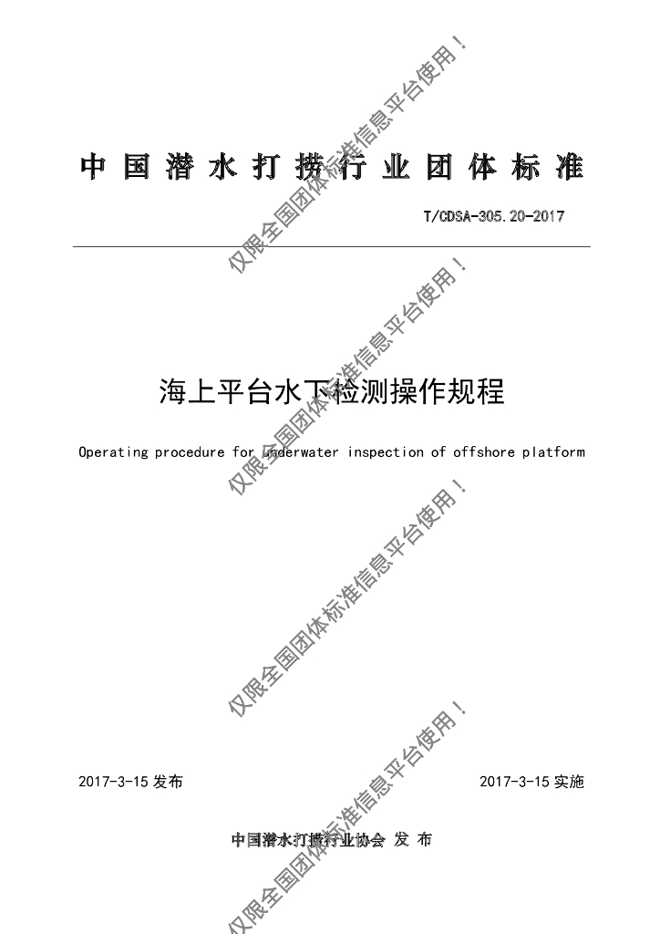 T/CDSA 305.20-2017 海上平台水下检测操作规程