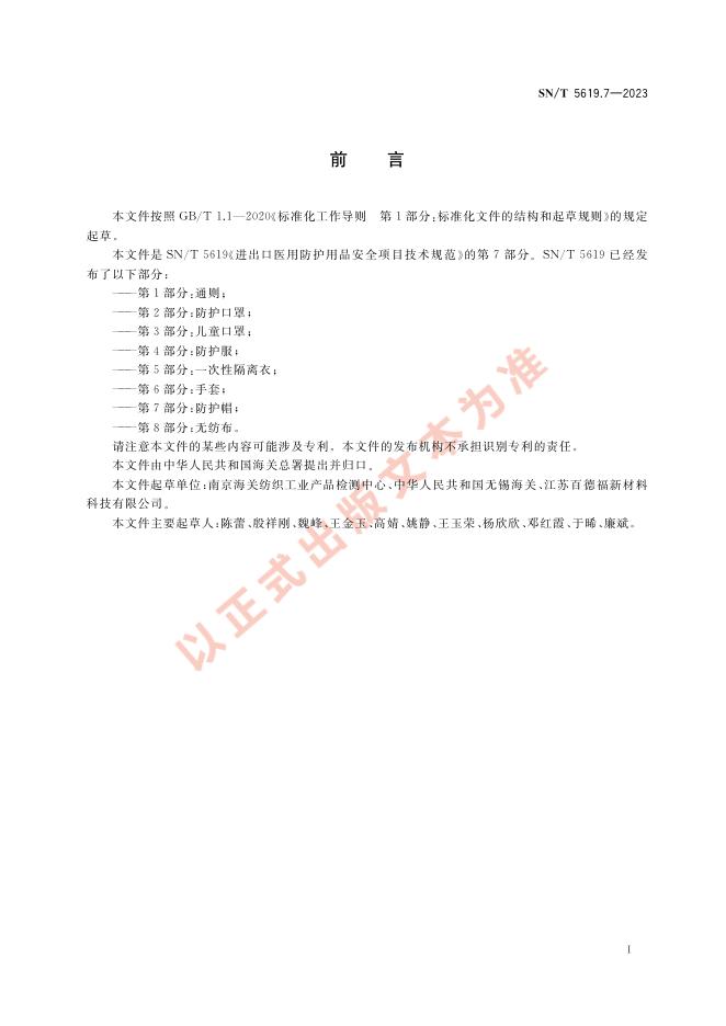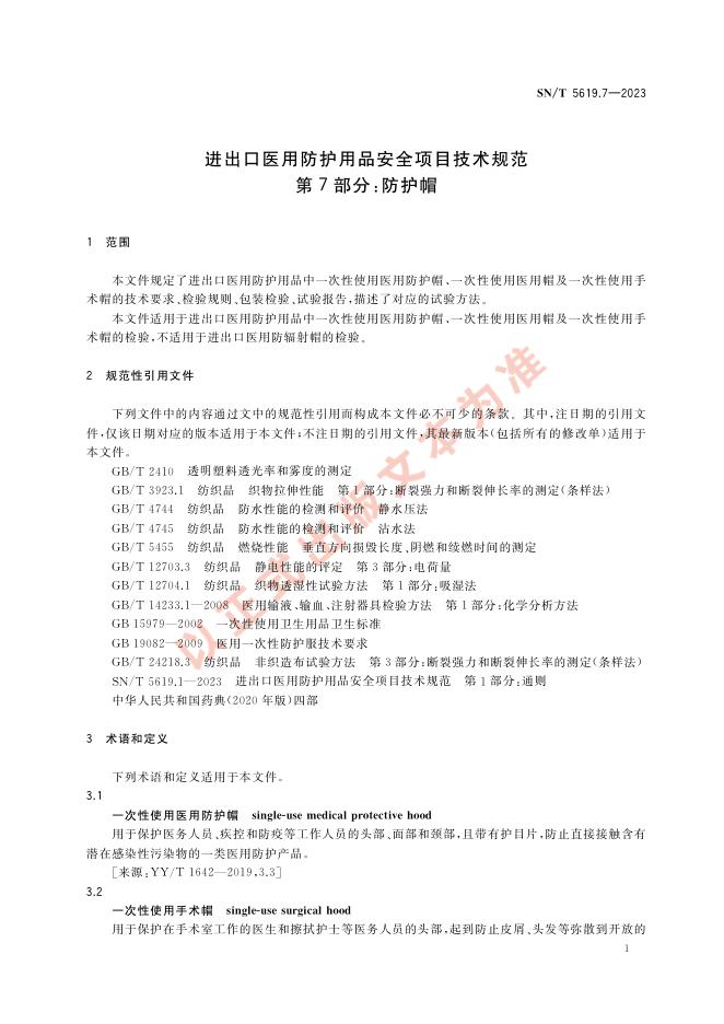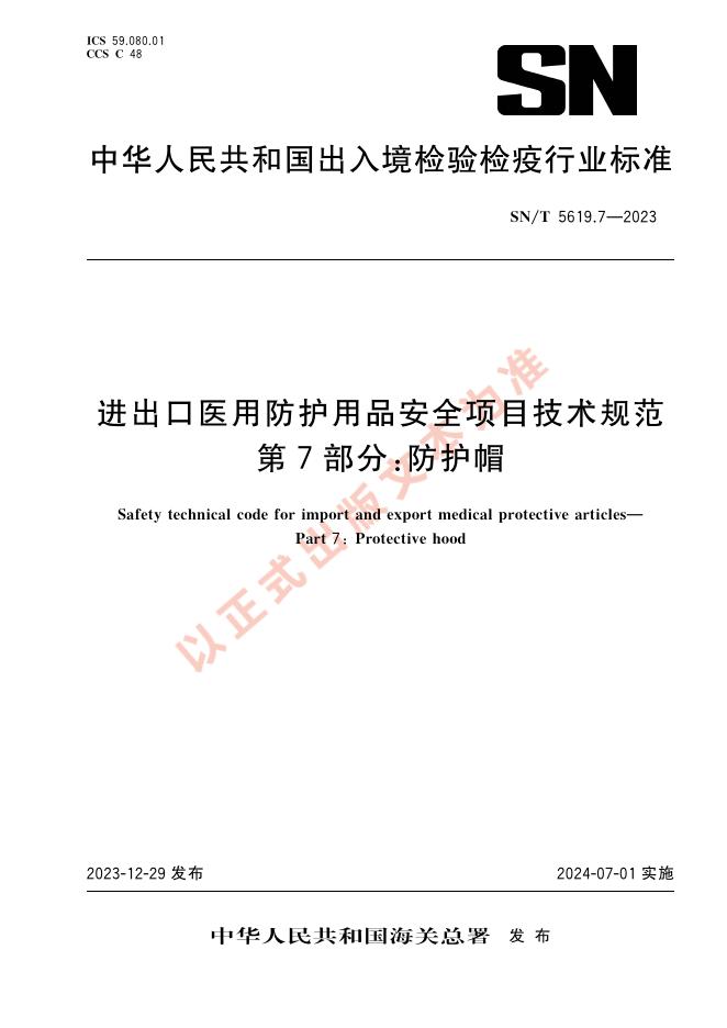 SN/T 5619.7-2023 进出口医用防护用品安全项目技术规范 第7部分:防护帽