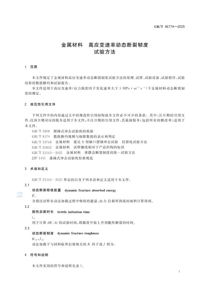 GB/T 46774-2025 金属材料 高应变速率动态断裂韧度试验方法
