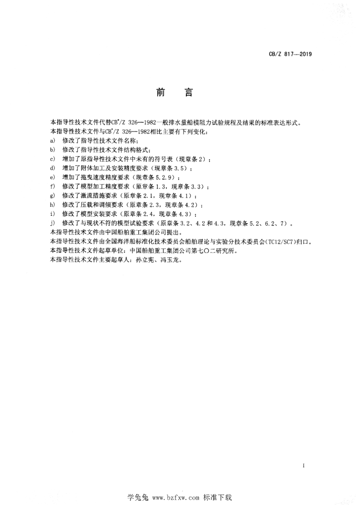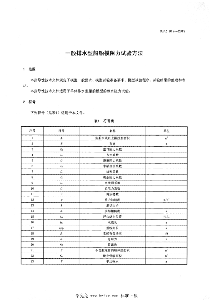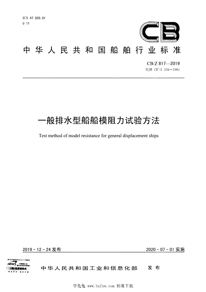 CB/Z 817-2019 一般排水型船船模阻力试验方法