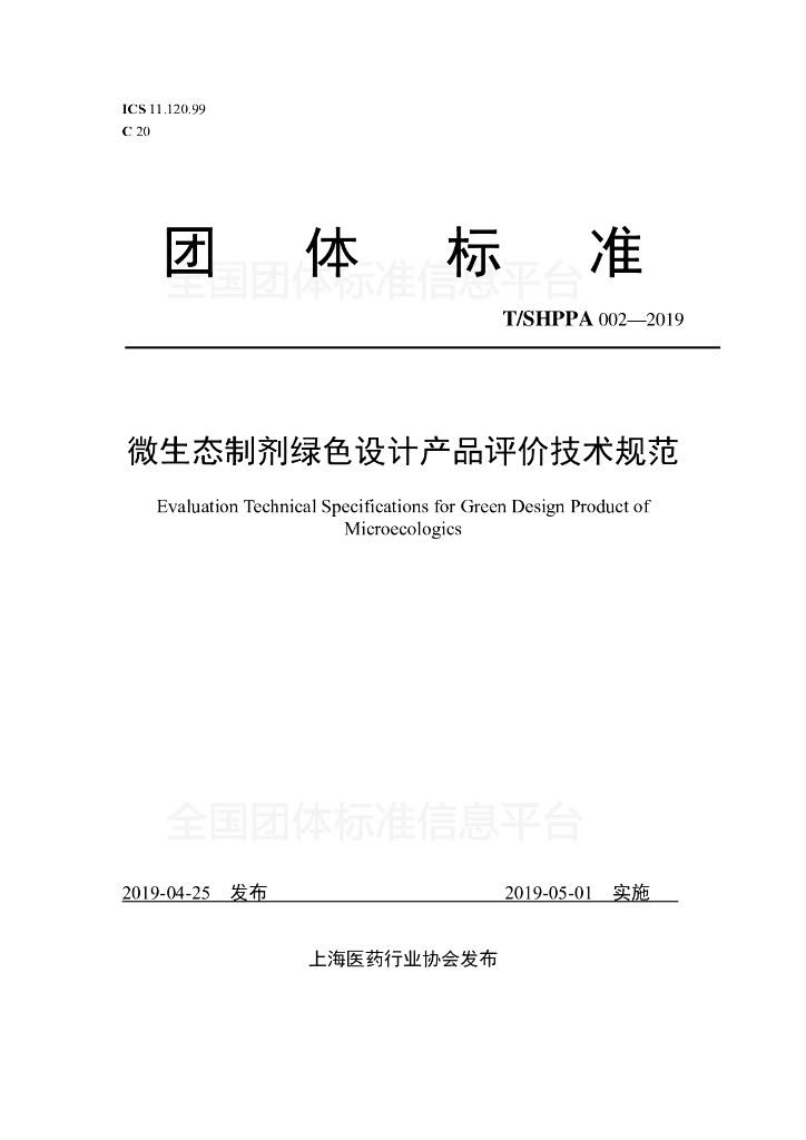 T/SHPPA 002-2019 微生态制剂绿色设计产品评价技术规范