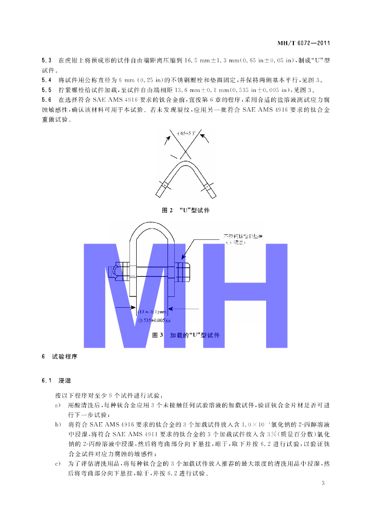 MH/T 6072-2011 飞机发动机清洗用品对钛合金应力腐蚀的试验方法