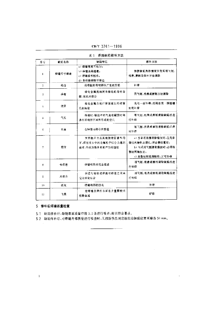 CB/T 3761-1996 船体结构焊缝缺陷修补技术条件