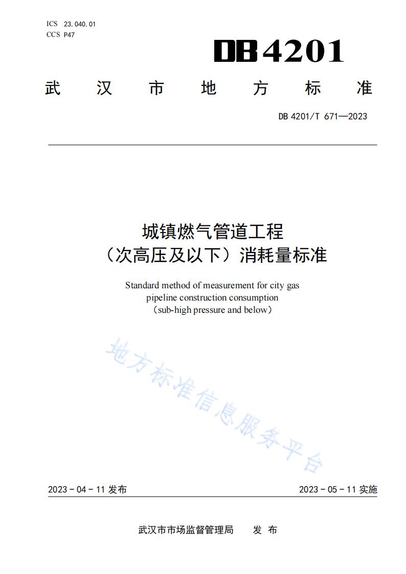 武汉市工程建设标准定额管理站、武汉市天然气有限公司、武汉市燃气热力规划设计院有限公司