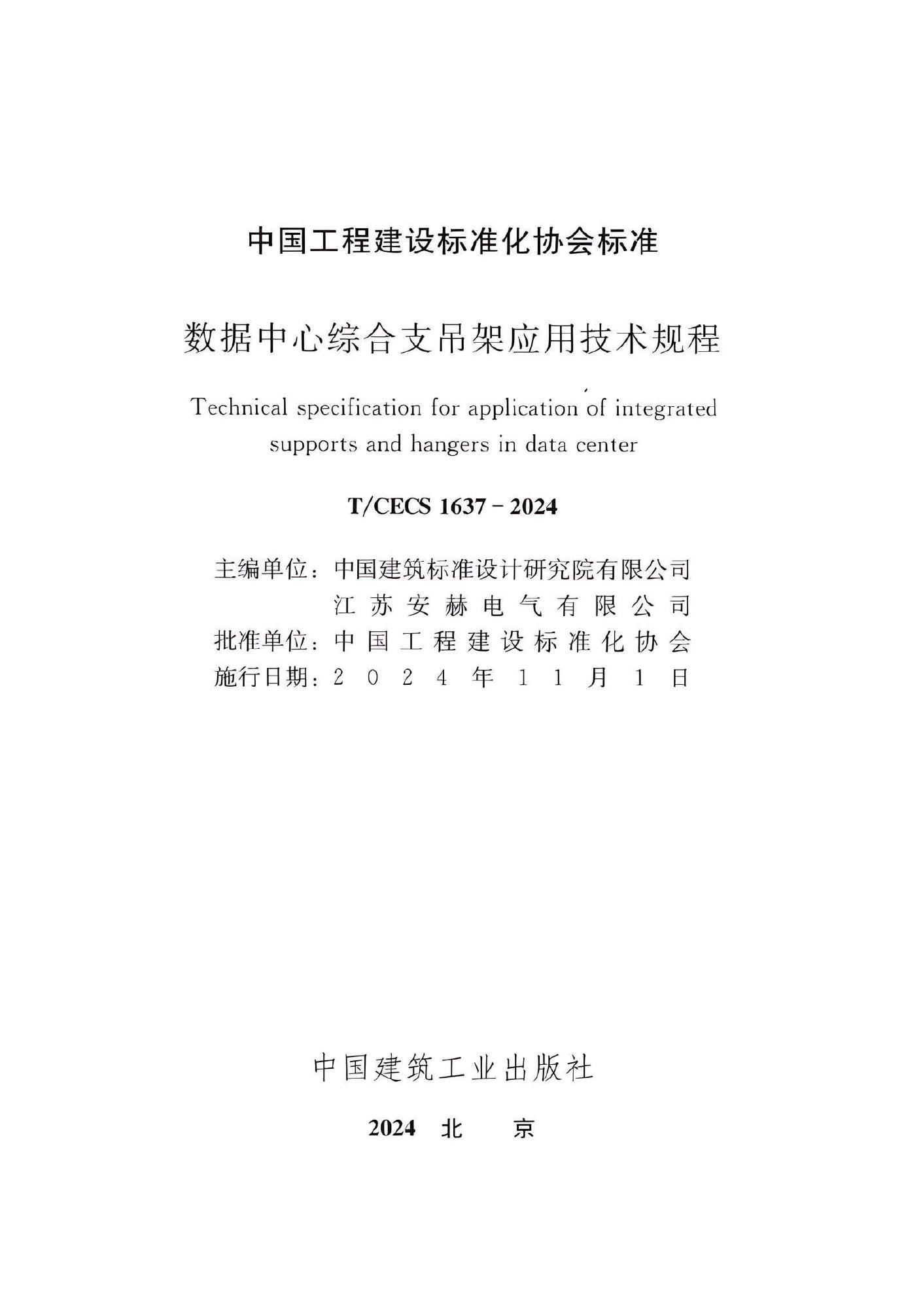 T/CECS 1637-2024 数据中心综合支吊架应用技术规程