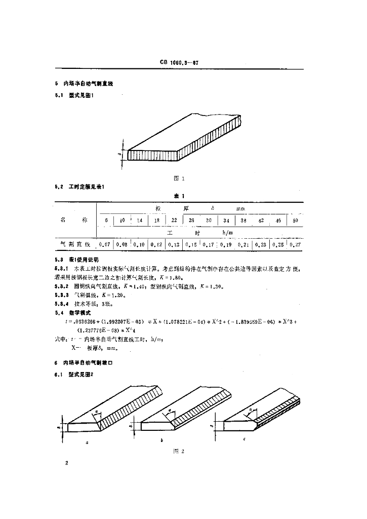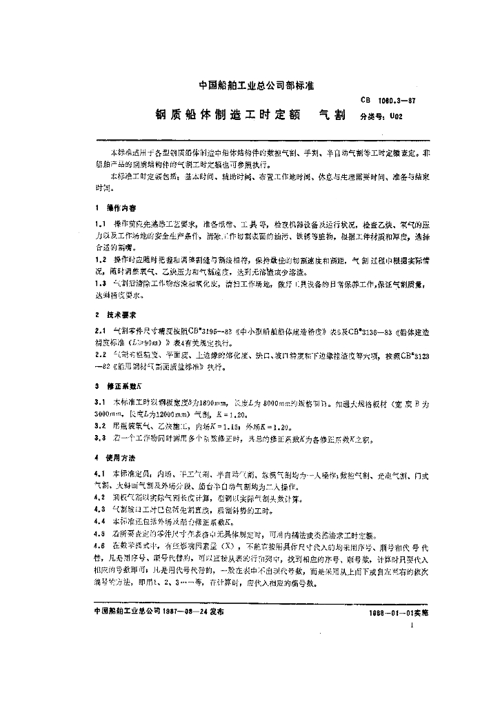 CB 1060.3-1987 钢质船体制造工时定额气割