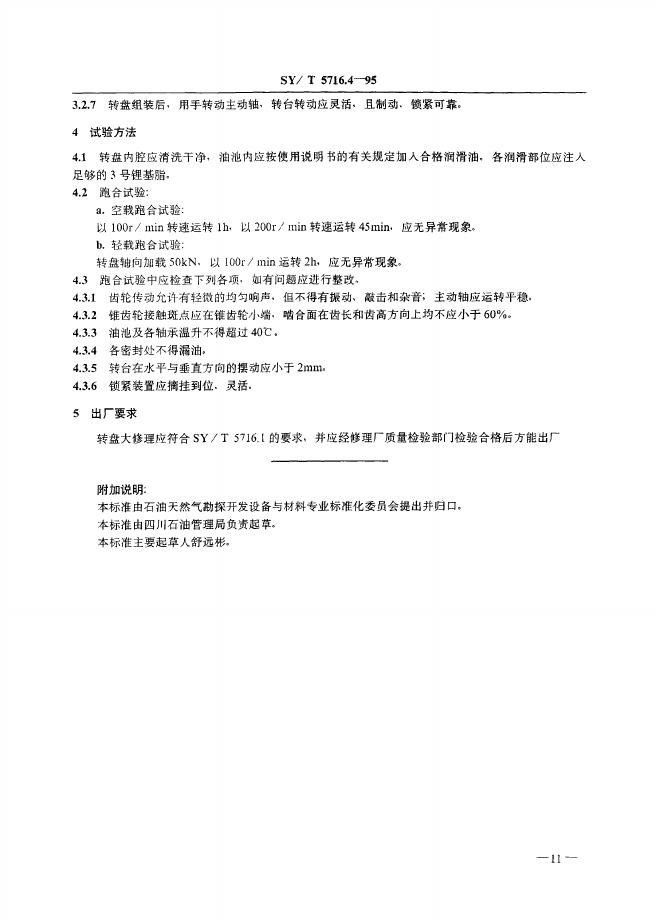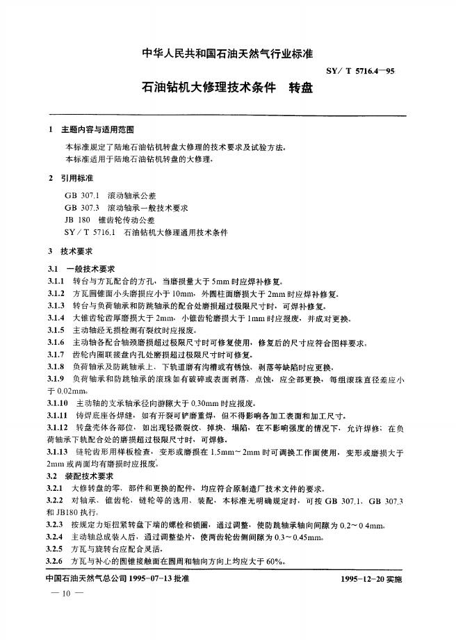 SY/T 5716.4-1995 石油钻机大修理技术条件转盘