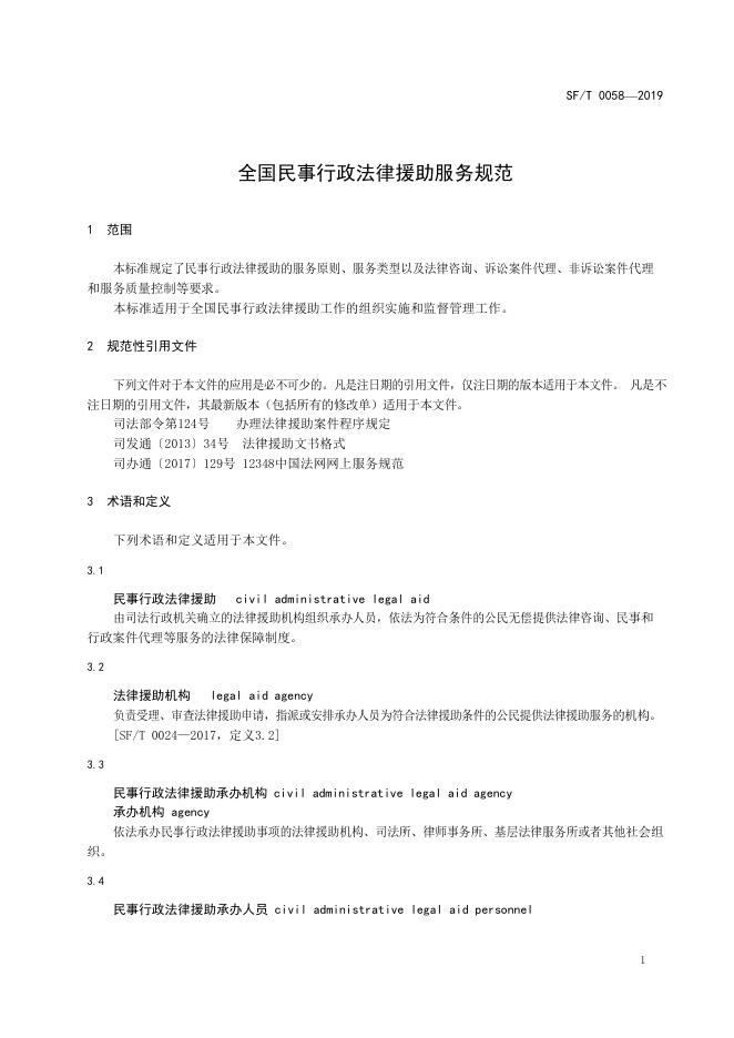SF/T 0058-2019 全国民事行政法律援助服务规范