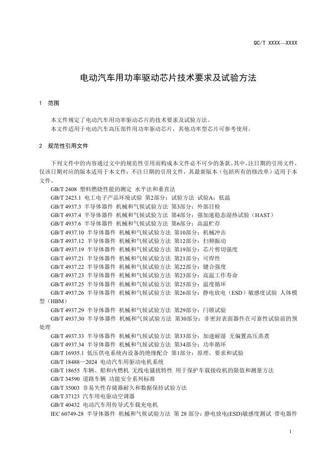 QC/T 1265-2025 电动汽车用功率驱动芯片技术要求及试验方法