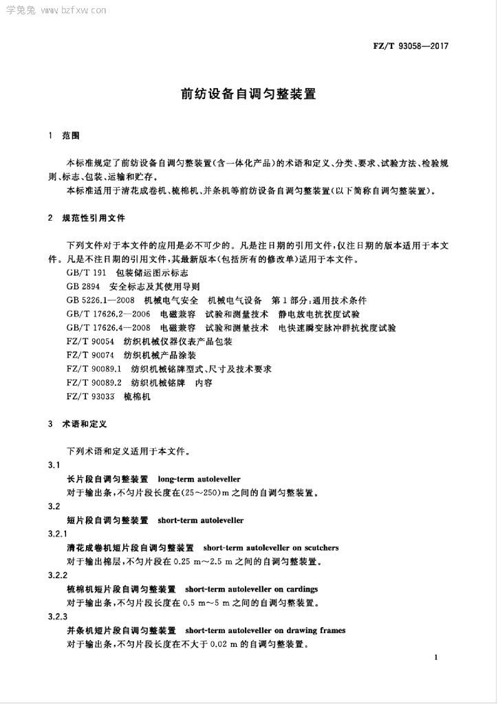 - 代替标准:FZ/T 93058-2001