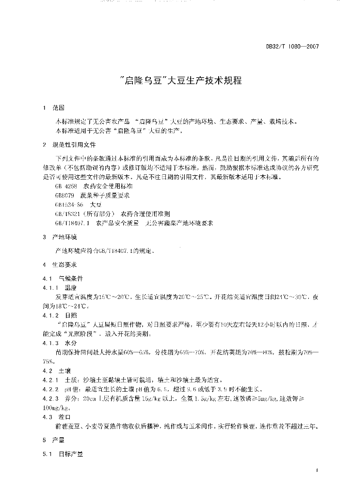 DB32/T 1080-2007 “启隆乌豆”大豆生产技术规程