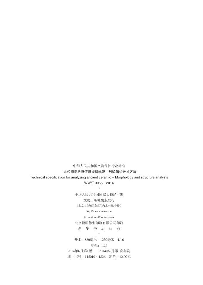WW/T 0055-2014 古代陶瓷科技信息提取规范 形貌结构分析方法