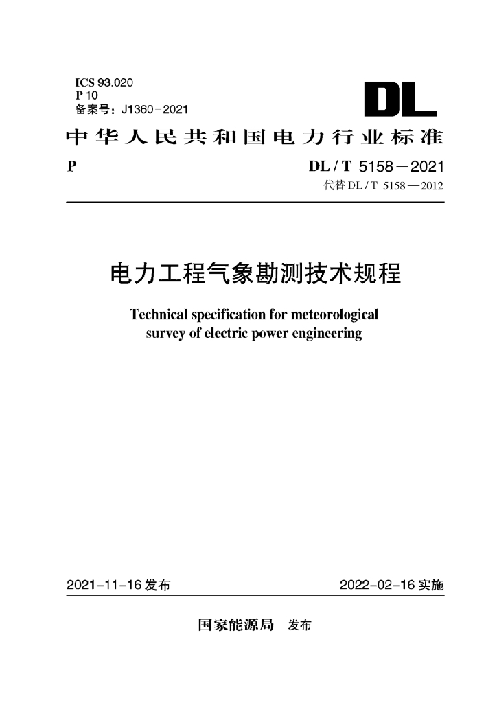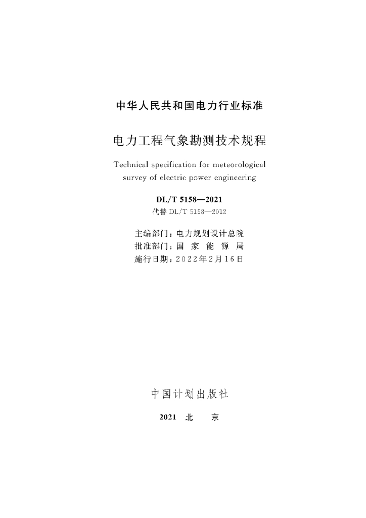 DL/T 5158-2021 电力工程气象勘测技术规程