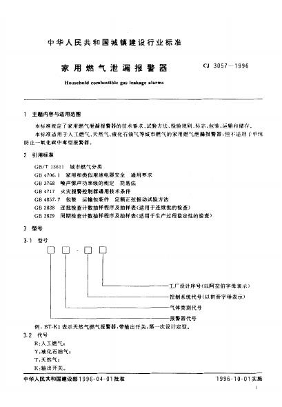 CJ/T 3057-1996 家用燃气泄漏报警器
