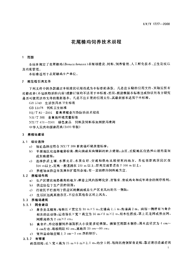 LY/T 1727-2008 花尾榛鸡饲养管理技术规范