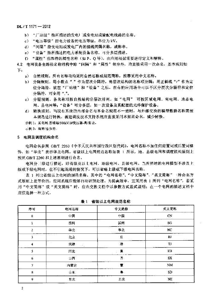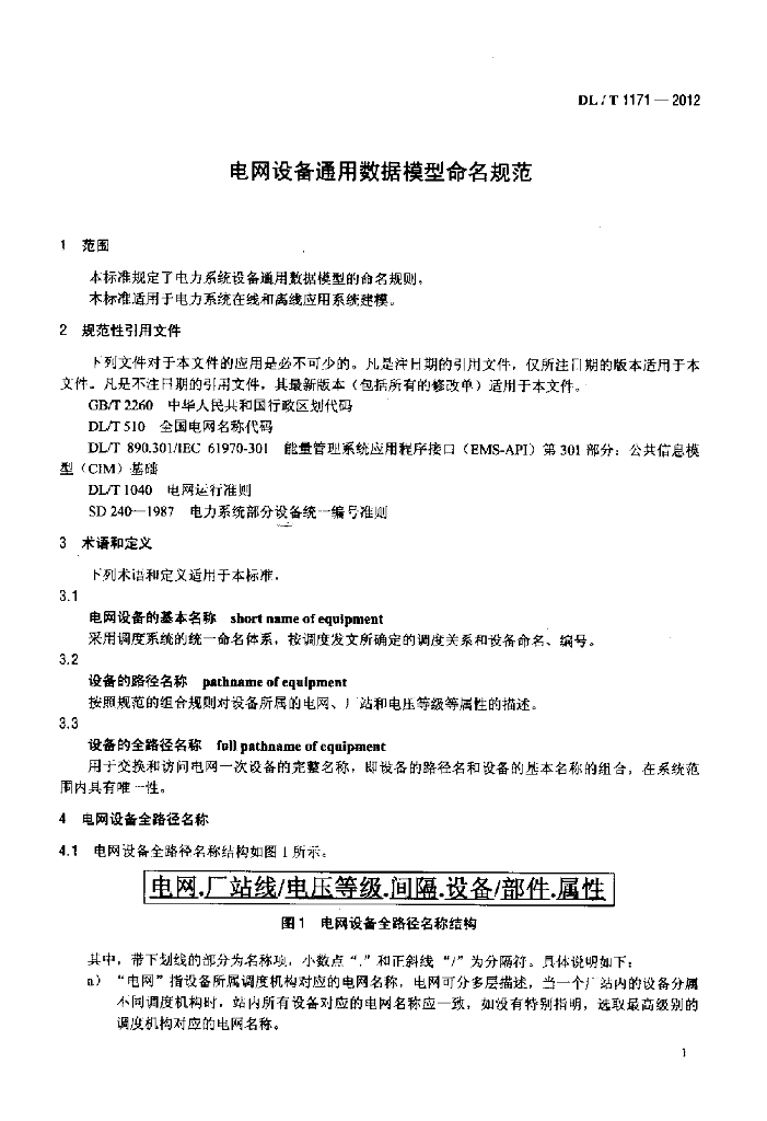 DL/T 1171-2012 电网设备通用数据模型命名规范