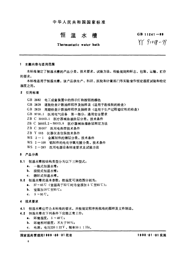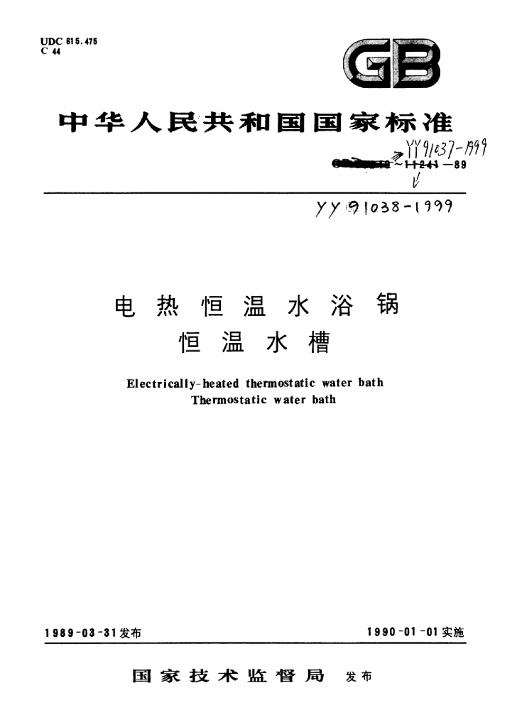 YY 91038-1999 电热恒温水浴锅恒温水槽