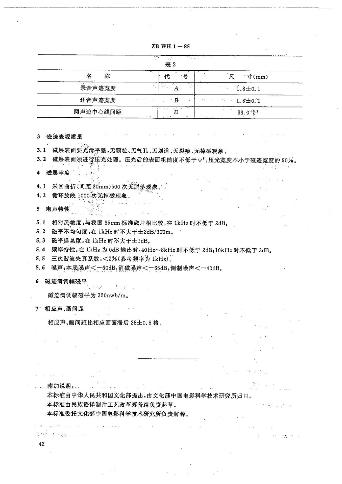 ZB WH 1-85 35mm光磁两用发行影片片边涂磁录音技术要求