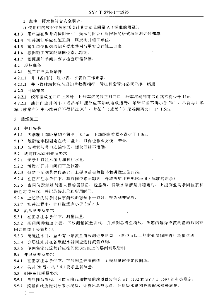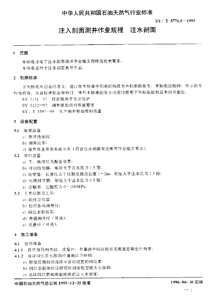 SY/T 5776.1-1995 注入剖面测井作业规程 注水剖面