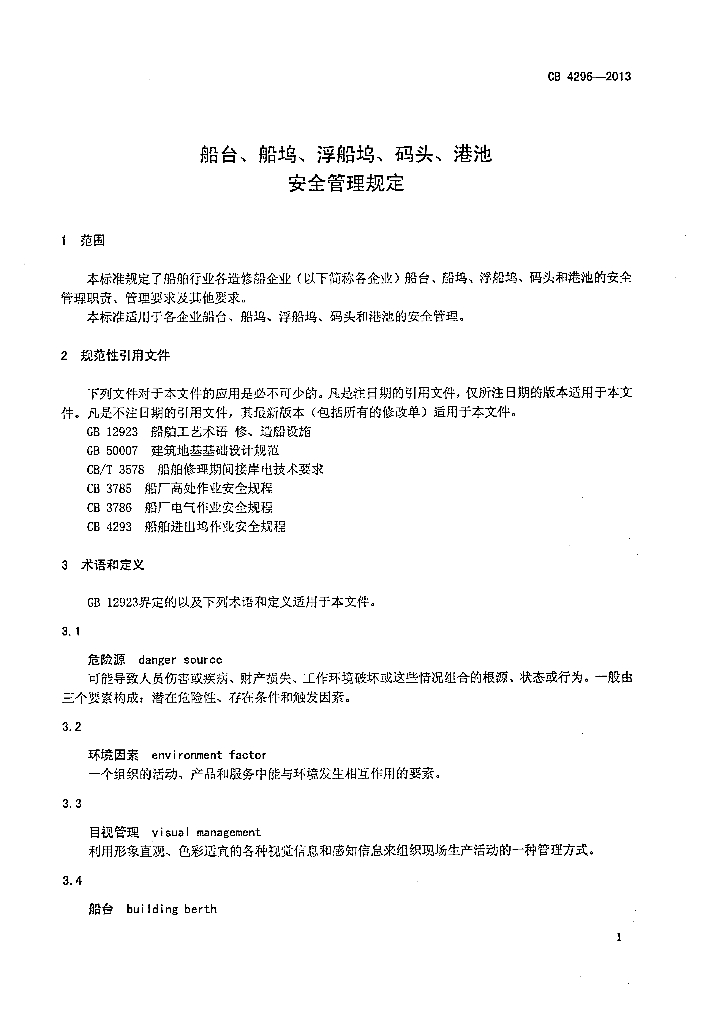 CB 4296-2013 船台、船坞、浮船坞、码头、港池安全管理规定