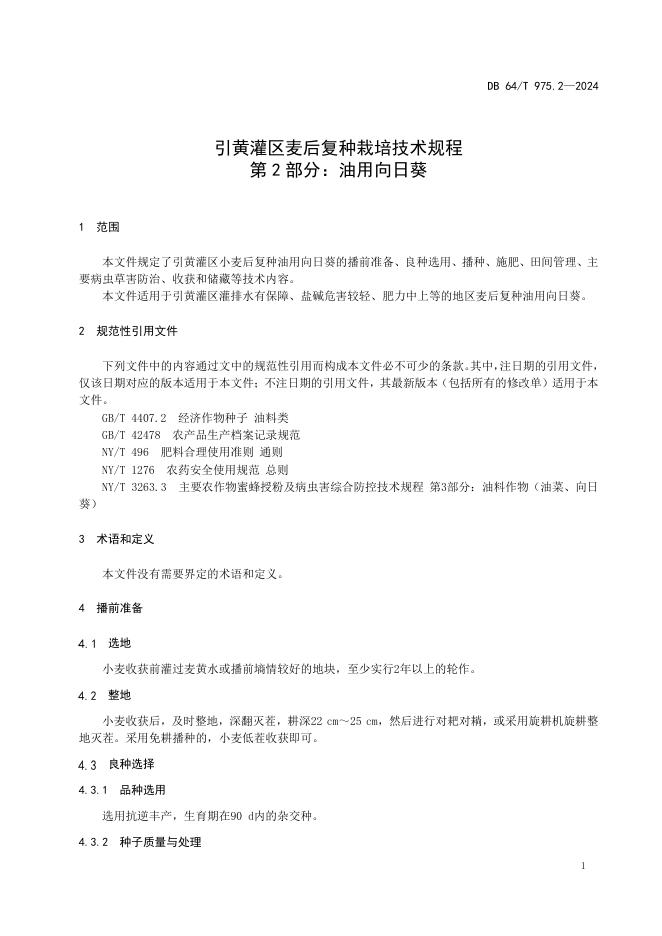 DB64/T 975.2-2025 引黄灌区麦后复种栽培技术规程--第2部分:油用向日葵