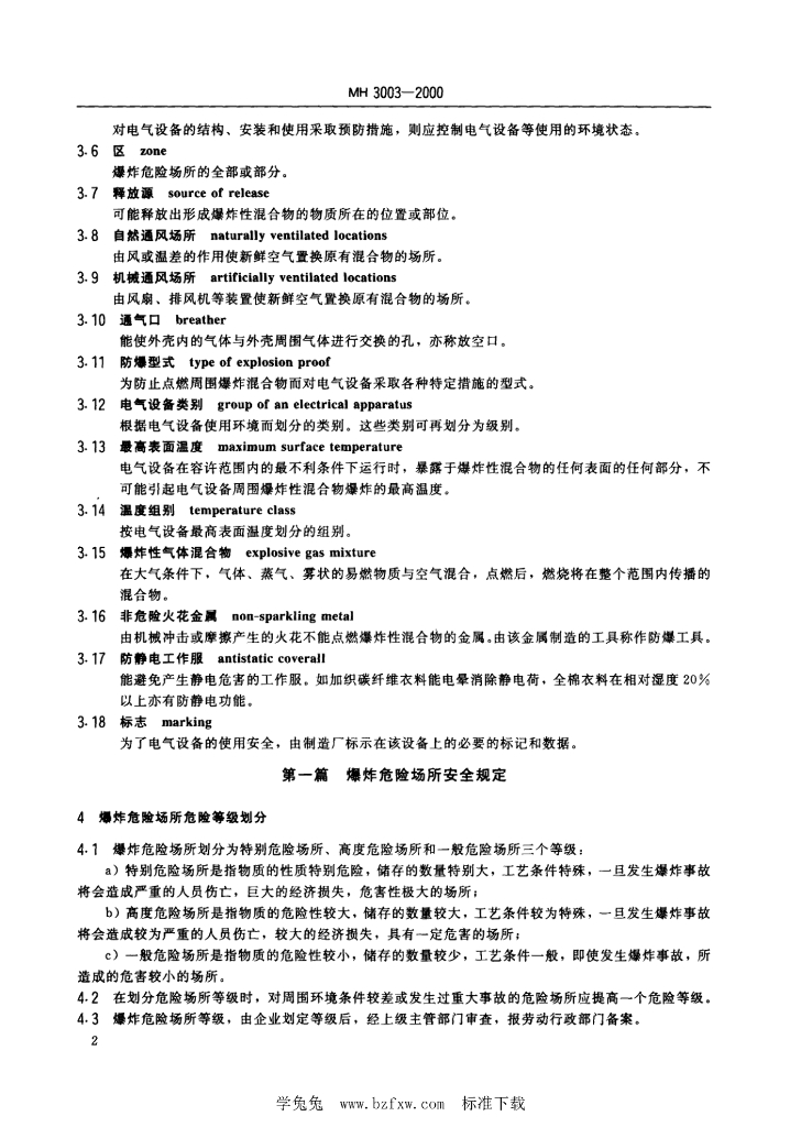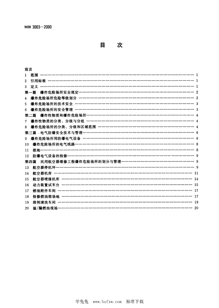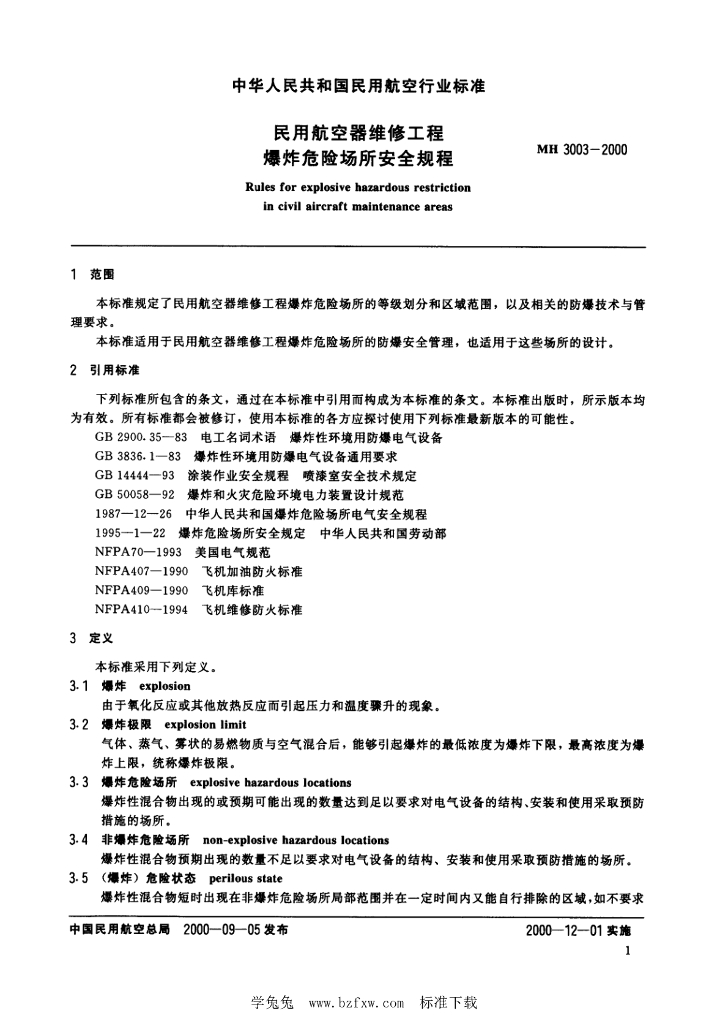 MH/T 3003-2000 民用航空器维修工程爆炸危险场所安全规程