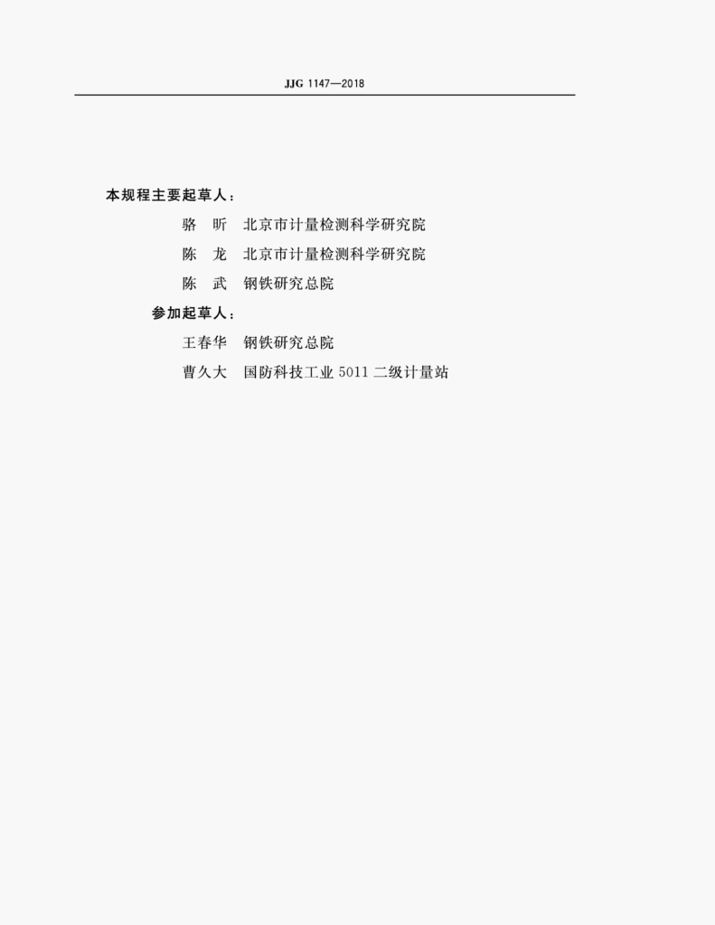 骆听(北京市计量检测科学研究院)、陈龙(北京市计量检测科学研究院)、陈武(钢铁研究总院)、王春华(钢铁研究总院)、曹久大(国防科技工业5011二级计量站)