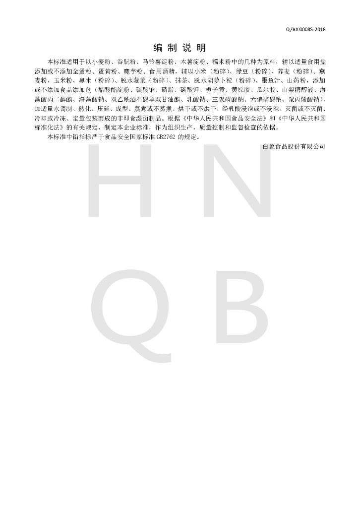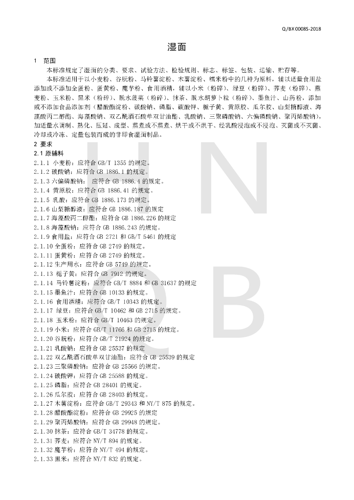 Q/BX 0008S-2018 湿面