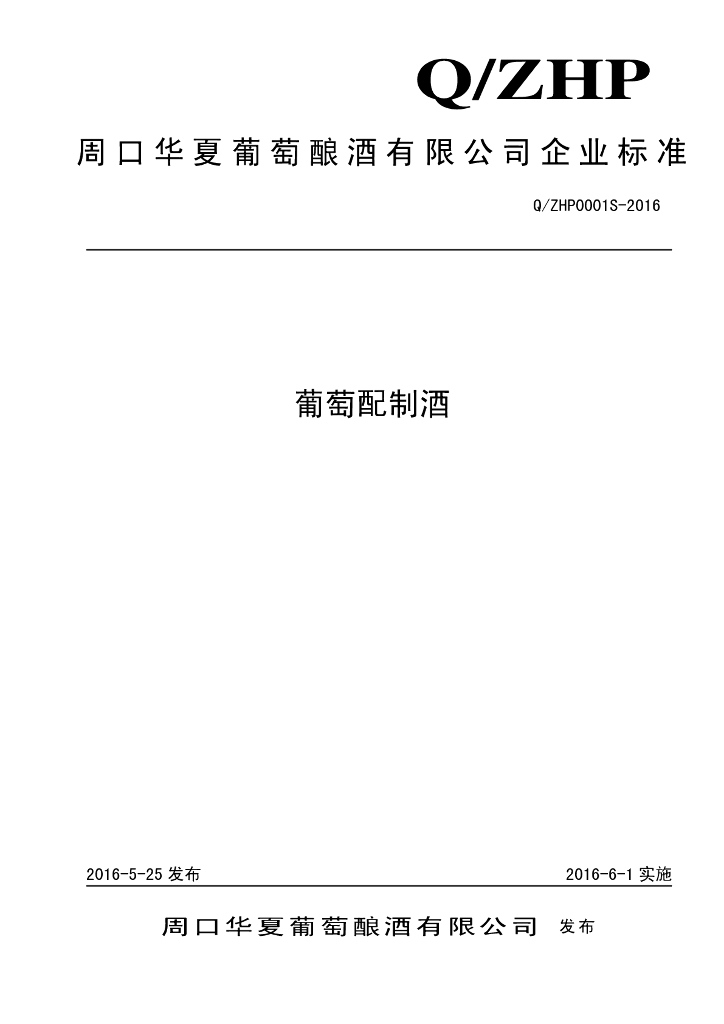 Q/ZHP 0001S-2016 周口华夏葡萄酿酒有限公司 葡萄配制酒