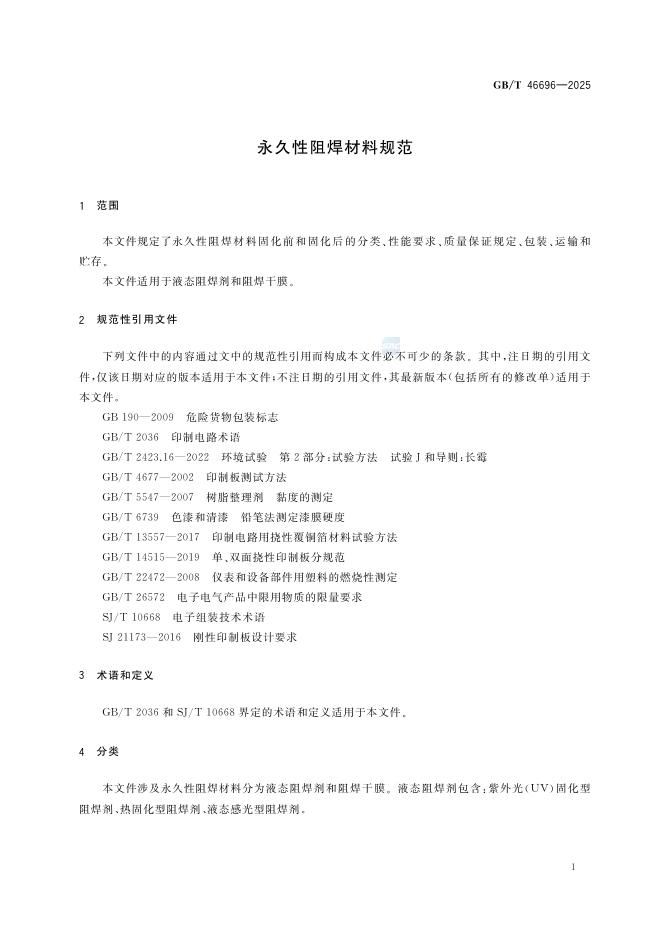 GB/T 46696-2025 永久性阻焊材料规范