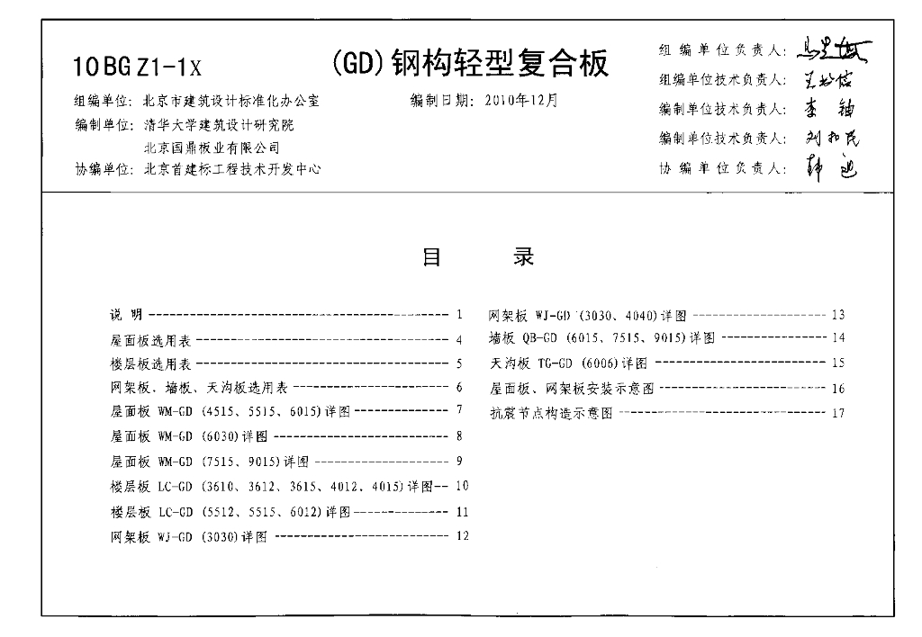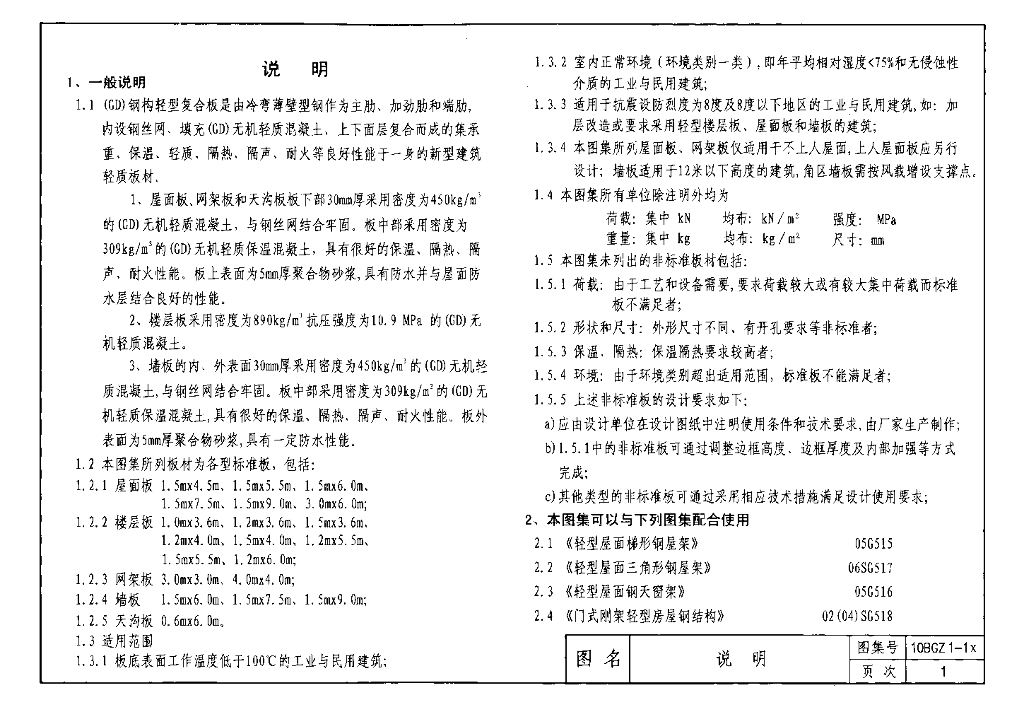 10BGZ1-1X (GD)钢构轻型复合板图集